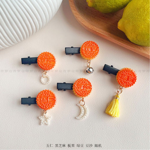 Y2k少女ペンダントbbクリップ髪飾りアイデア中秋節月餅髪カード月星かわいいアクセサリー前髪クリップ