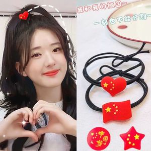 旧正月の国慶節の髪飾り子供の皮筋中国五星紅旗の髪輪の女の子の赤ちゃんの赤い髪ひもの髪飾り女