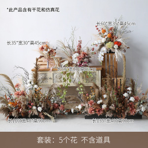 乾燥葦美陳花芸セット結婚式イベント迎賓区に花テーブルの花の道を配置して木の枝をシミュレーションします。