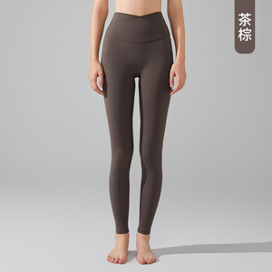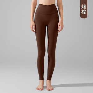 桃色のハイウエストでヒップアップ効果のある、ラインが目立たない高強度ヨガパンツ。ランニング、春夏秋に最適なタイトフィットのスポーツウェア、女性用。