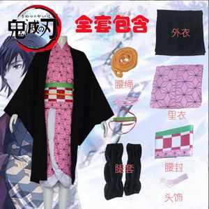 祟り豆子供cos鬼滅の刃コスプレ衣装かつら靴セット竹筒に髪飾りアニメ