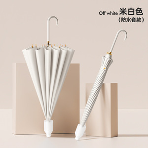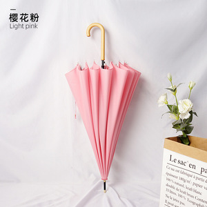 新しい自動 16 本骨日傘ロングハンドル傘拡大ダブル木製湾曲ハンドル兼用インスタイル小さなクリア傘