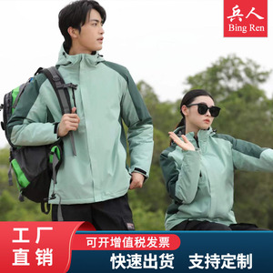 戸外突撃服男女厚手一体式秋冬ベルベットコート防水通気保温突撃服刺繍字
