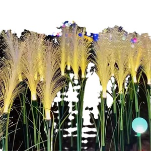 屋外の庭の花の庭園の景観の小さい庭のベランダは雰囲気の芝生の明かりの太陽のネットの赤い光ファイバーの葦の明かりを配置します。