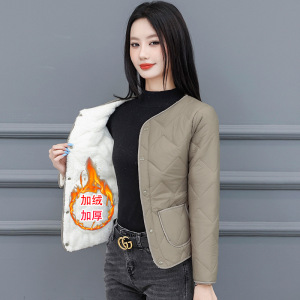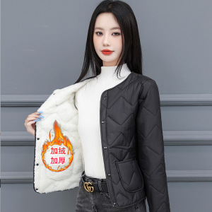 秋冬ダウン綿服の女性の内胆の短いサイズの中に保温綿服を着ています。