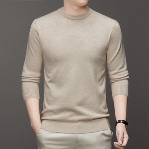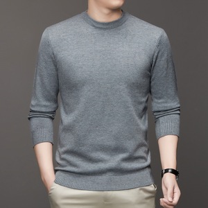 クロスボーダー秋冬メンズセーター色あせしない抗ピリング無地ラウンドネックスリムフィットメンズボトリングセーターメンズ長袖
