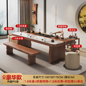 【高級品アップグレード】1.8メートル茶卓 + 舒美特椅子 + ソフトバッグベンチ2 + 1.8メートルベンチ + 茶台