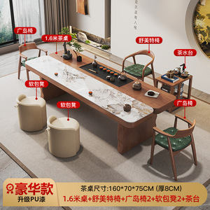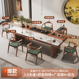 大板泡茶テーブルと椅子の組み合わせ家庭用岩板茶テーブル一体実木茶台セット事務交渉茶テーブル