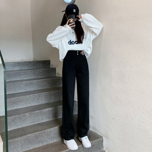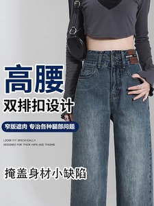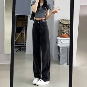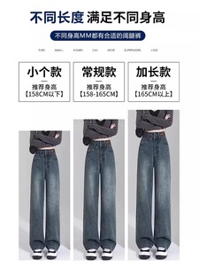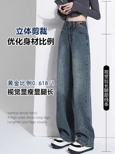 レトロハイウエストワイドレッグジーンズ春と秋の女性の2025新しい狭いバージョンは股をカバーし、スリムに見せます、ロングフロアレングスストレートパンツ