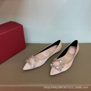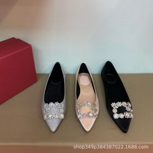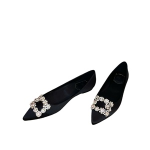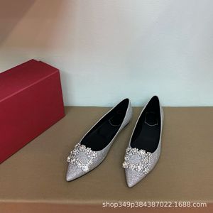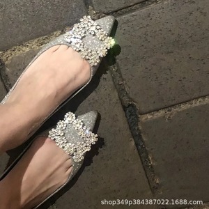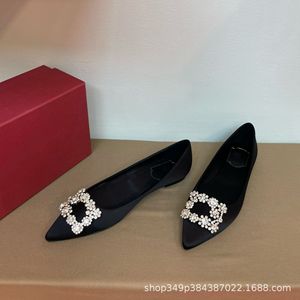 万産! RV クラシックラインストーンスクエアバックルフラットシューズポインテッドトゥ浅い口シルクサテンの結婚式の靴フレンチバンケットシューズ