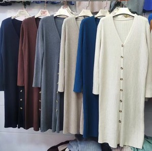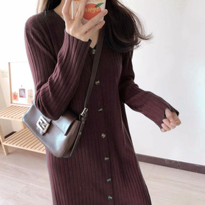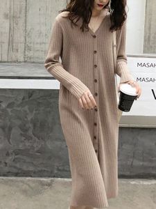 シンプルで多用途な V ネックニットドレス女性のための 2025 秋と冬の新しいルーズでスリムなコート底セータースカート