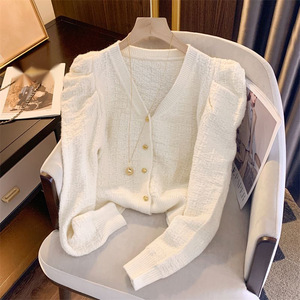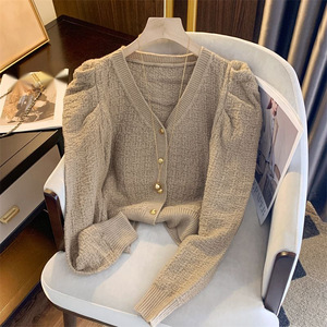 泡袖襟カーディガンのニットコート2023秋のフレンチレトロな雰囲気の高級感があります。