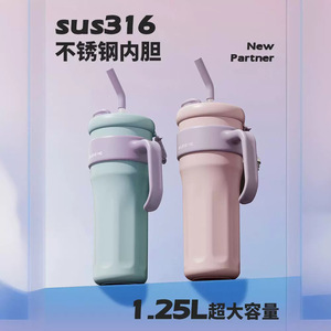 ビッグマック氷覇カップ316ステンレスストロー保温カップ女性カップ高颜値カップ大容量ハンドル付き