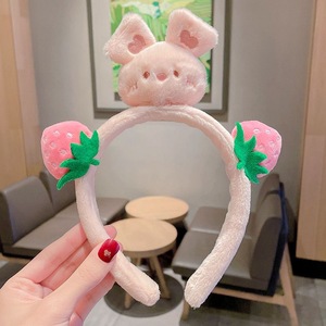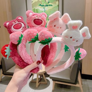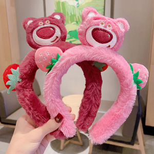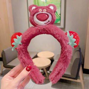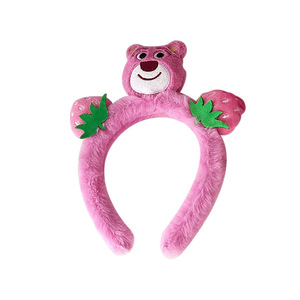ネットレッドのいちご熊アニメのぬいぐるみのカチューシャさんはマスクをつけて滑り止めのかわいい束のカチューシャをしています。