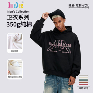 2025年秋冬新作、クロスボーダー風、厚手の純綿オーバーサイズスウェットシャツ、メンズカジュアル、トレンディでイケメンなルック、ゆったりとしたジャケット