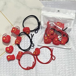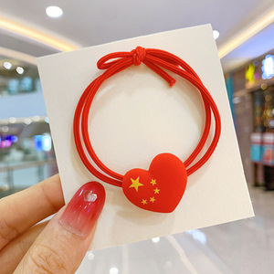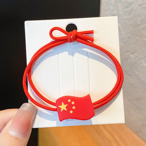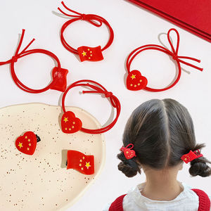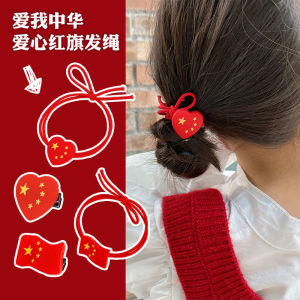 国慶節の頭飾りの赤い髪ひもの子供の皮筋は赤ちゃんの国旗のヘアピンのヘアゴムの髪ひもを傷つけない