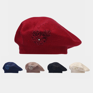 フランスのレトロなドリルの小さい花のメリヤスのレースの帽子の文芸の小さい清新な画家の帽子の秋冬のファッションの保温帽子