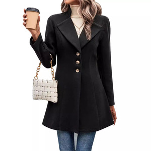スポット72231 # アマゾンクロスボーダー女装欧米INSファッション純色襟ラシャコート秋冬
