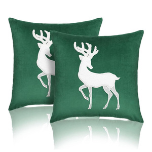 ホワイトエルク刺繍クリスマス枕カバー、クリスマスのリビングルームや部屋の装飾用クッションカバーに最適