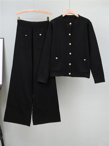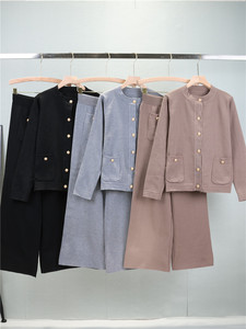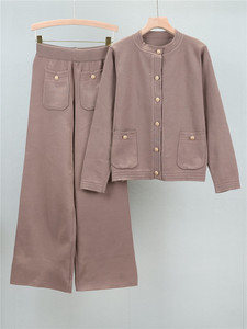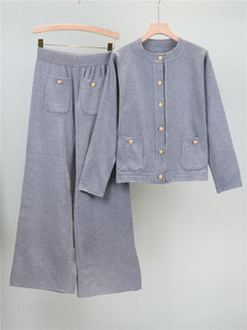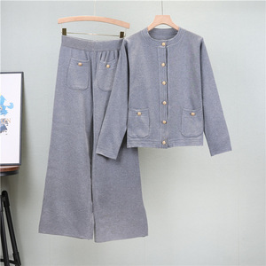 ヨーロッパ風のクロスボーダーセットアップ、女性用秋冬ニットセーターとワイドレッグパンツ、おしゃれでカジュアルなツーピースセット
