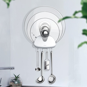 多機能な鍋の蓋の棚の台所の貯蔵棚は穴を開けないで重力の荷重を受けて壁の鍋の蓋の棚を掛けます。