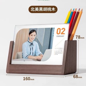 木製多機能筆筒台歴底托2024写真カレンダー台座置物シンプルビジネス実木置物台