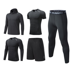 スポーツスーツ、脂肪減少フィットネスウェア、5点セット、ランニング用品、速乾性、バスケットボール、アイスシルク、サイクリングタイツ