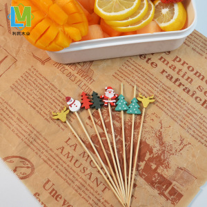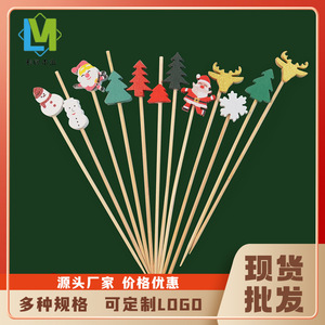クリスマスデコレーション用竹串、サンタクロース、トナカイ、雪だるま、使い捨てフルーツ串、ハンバーガー串の卸売