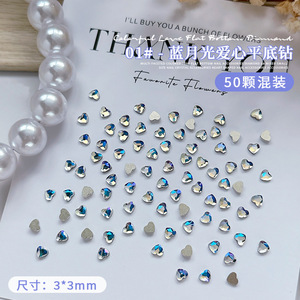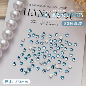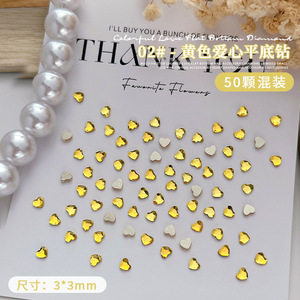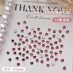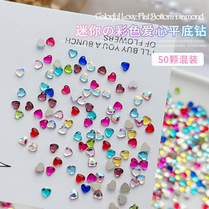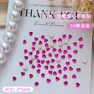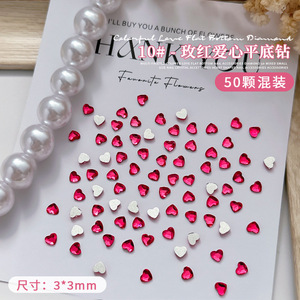 50個のネイルミニ愛ドリル3mm桃心平底超フラッシュネット赤少女心爪水晶アクセサリー卸売り