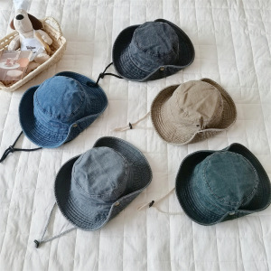 子供用デニムのつばをひっくり返した漁師の帽子春と秋のアウトドア登山の日よけの帽子の中の大きい子供の西部のカウボーイの帽子の卸売り