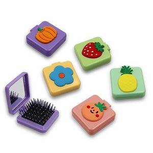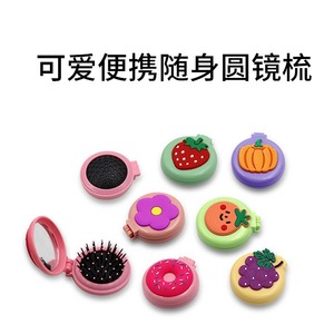かわいい果物のパッチの二つ折りの鏡は円形の四角形の携帯のポケットの携帯の鏡を櫛して卸売りのシリコンの漫画を結びます。