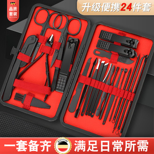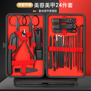 クロスボーダー爪切りマニキュアコンプリートセット黒と赤 24 ピース斜め爪切り 1 ピースマニキュアセット角質はさみ