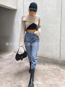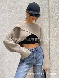 2023秋冬の新型日韓の不規則なニットのセーターの女性のデザイン感の小さい大衆の交差するニットの大きいサイズの婦人服