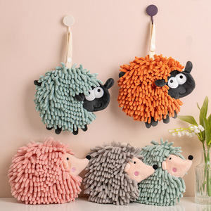 かわいいハリネズミシェニールは手ぬぐいを拭くことができます。
