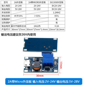 DC-DC昇圧モジュール2a昇圧板入力3V/5V/9V/12V/24V調整可能MT3608