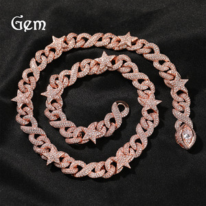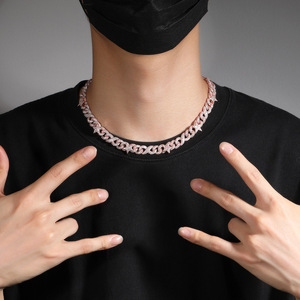 高級感古萌ヒップホップピンク10mm男性ネックレス高品質満ドリル五角星目ボタンキューバチェーン