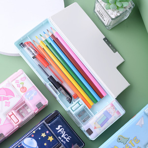 クリエイティブ多機能文房具ケース小学生大容量鉛筆収納ケース子供二重プラスチック漫画鉛筆ケース