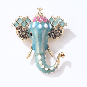 藍豪クロスボーダータイレトロ滴油ブローチファッション吉祥入れダイヤモンド象胸花ピンアクセサリー女ブルーチ
