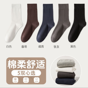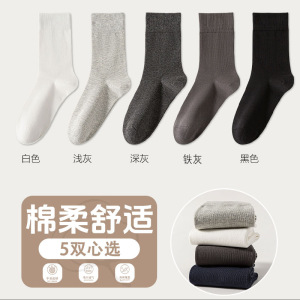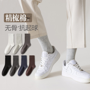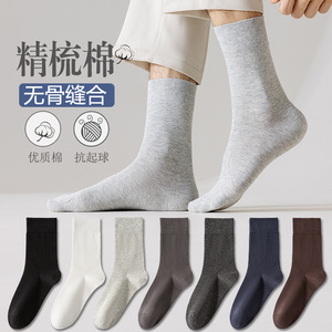 靴下男秋冬純色中筒男靴下無骨縫い頭長靴下百合カジュアル男性ビジネス綿靴下