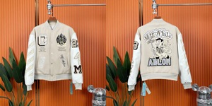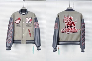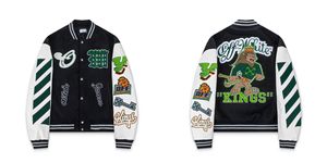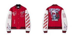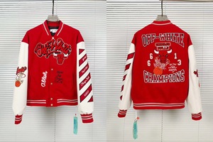23秋冬新作OFF OW雄牛連名重工刺繍ピンチ野球服ジャケットカップルモデル男女