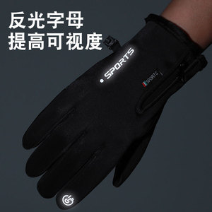 保温手袋男性冬防水タッチパネルとベルベット屋外自転車防寒タッチパネル毛口ファスナー手袋アマゾン