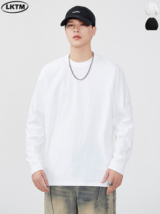 Lktmメンズ # 純綿長袖tシャツメンズ丸首ゆったり潮日系インナーカジュアル上着プルオーバー