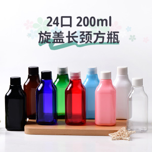 スクリューキャップ中栓付き200mlロングネックスクエアボトル、ピンクボトル+中栓+白スクリューキャップ、ペット