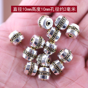 チベット銀二色合金六字真言桶珠頂珠diyアクセサリーアクセサリーブレスレット