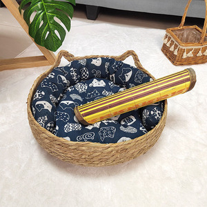 藤編猫窩四季通用蒲草窩ネット赤冬保温猫ベッド猫掴み板犬窩猫ペット用
