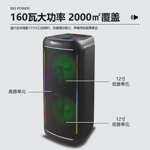 新製品RX-15208ダブル15インチスピーカー大出力bluetoothスピーカー屋外160ワット大音量バスケットオーディオ