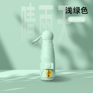 五つ折り6骨純色日傘-薄緑色-カプセルケース