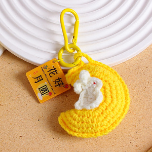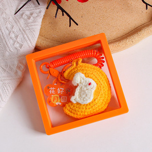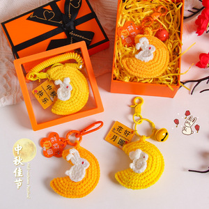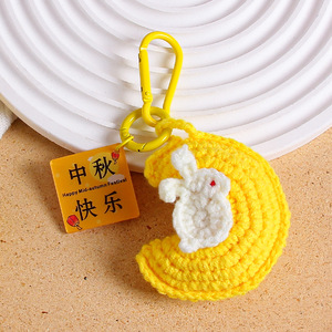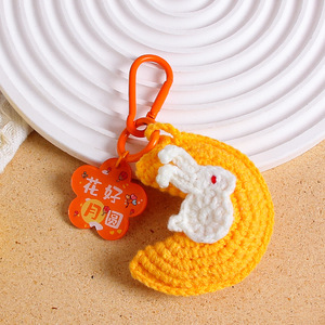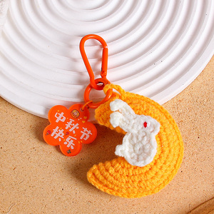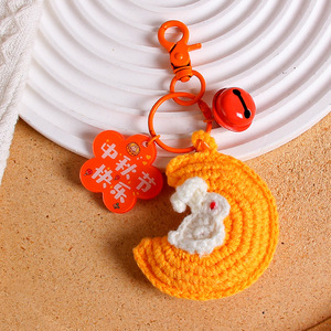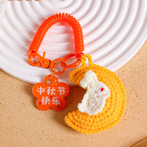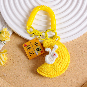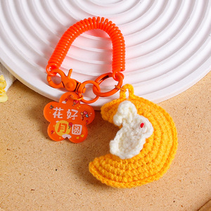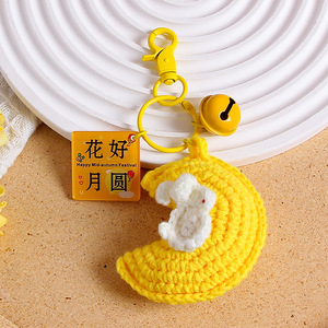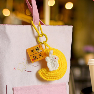 中秋の楽しいキーホルダー手織り毛糸月ウサギストラップ花好月円字ブランドバッグ掛けアクセサリー