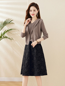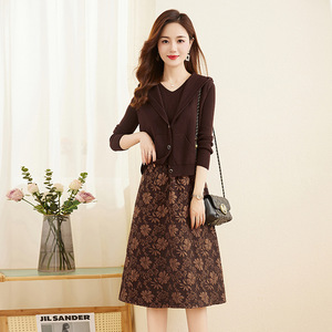 2025秋冬新作 おしゃれで上品なジャカード織りのニットワンピースとウエストシェイプ効果のあるツーピースセット