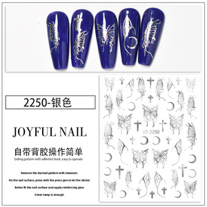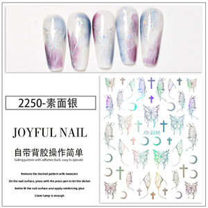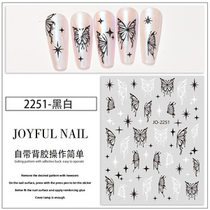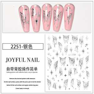 液体の蝶のネイルシールの立体レーザーと金銀の白黒の蝶の薄い靭性帯のゴムを背負って花の爪を貼って卸売りを貼ります。